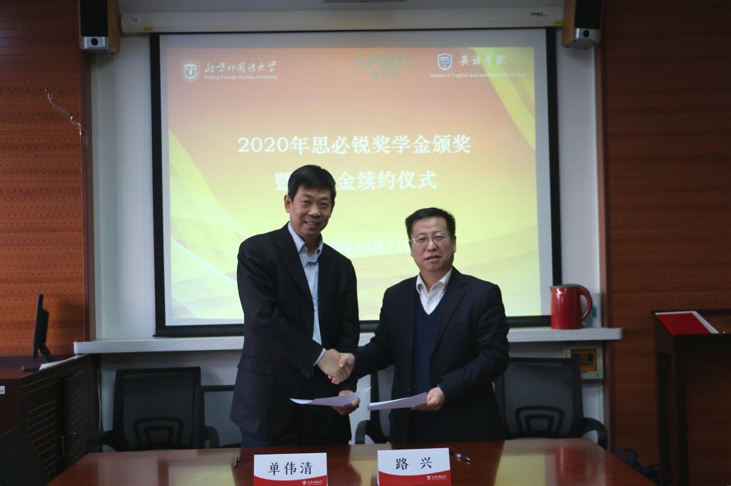 单伟清总经理介绍了思必锐公司的整体状况。他讲到,思必锐公司业务范围宽广,覆盖多个行业领域,公司对高水平翻译人才非常重视,特别希望北外学子的加入。2020年受新冠疫情影响,公司不可避免的受到冲击。但随着党和政府在疫情控制方面的积极作为,公司的业务在慢慢回暖,希望继续保持与北外yl23411永利的合作关系,在人才培养方面尽一份力,在翻译领域继续做好做强。他向获奖员工颁发奖学金证书,寄语员工一如既往努力学习,秉承“一字不苟,千金之诺”的信念打磨翻译技能。