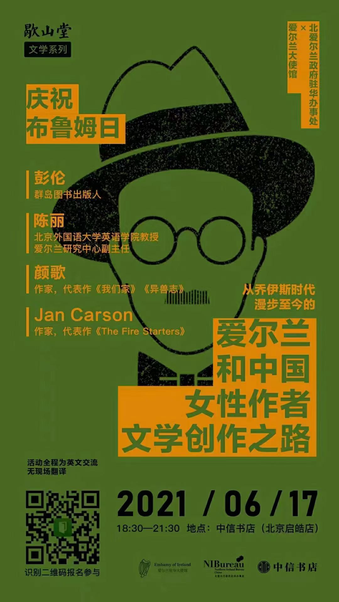 2021年6月 17日晚,yl23411永利官网爱尔兰研究中心副主任陈丽教授及中心员工8名应邀赴北京朝阳启皓大厦中信书店,参加由爱尔兰大使馆主办的庆祝“布鲁姆日”读书会活动。布鲁姆日来源于爱尔兰著名作家詹姆斯·乔伊斯的名著《尤利西斯》,该书讲述了主人公布鲁姆于1904年6月16日在都柏林一天的漫游过程。自1954年后,6月16日逐渐发展为一个文学节日“布鲁姆日”,每年在全球各地被乔伊斯文学爱好者以各种方式庆祝。