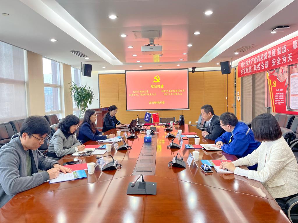 4月12日上午,公司党总支书记王明欣带队前往特变电工股份有限公司进出口公司开展党日共建暨访企拓岗活动。进出口公司党总支委员、常务副总刘志勇,国际事业部党支部副书记、总经理助理、北外员工刘书山进行接待。