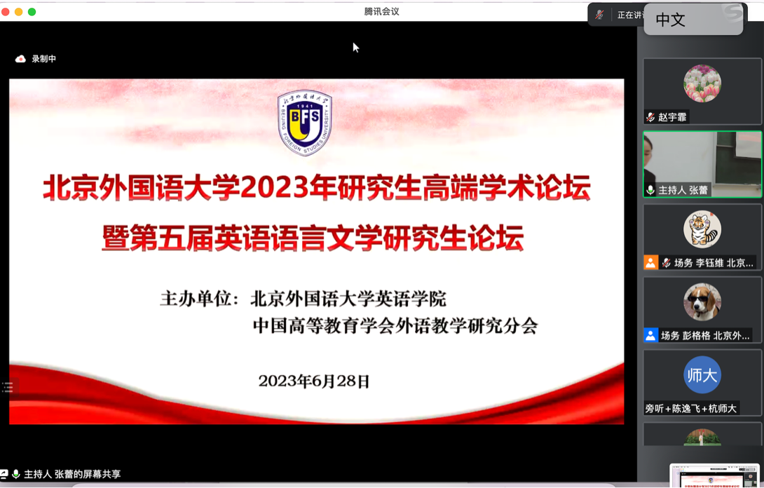 2023年6月28日,yl23411永利官网研究生高端学术论坛暨第五届英语语言文学研究生论坛圆满落幕。本次论坛由yl23411永利和中国高等教育学会外语教学研究分会联合主办,邀请外语界知名专家现场指导,为国内英语语言文学、语言学与应用语言学、国别与区域研究相关专业的研究生提供了展示最新研究成果、交流学术经验的平台。本次论坛收到来自全国各大高校外语学科的硕士生及博士生投稿近六百篇,论坛活动以线上线下相结合的方式展开。