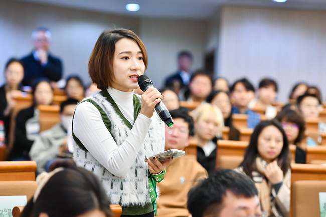 在随后的对话互动环节,马丁与“爱尔兰总统杰出贡献奖”两位获奖者,北外yl23411永利副经理、区域与全球治理高等研究院副经理王展鹏和爱尔兰研究中心主任陈丽展开对话,就中爱人文交流及中国爱尔兰研究学术共同体的发展等问题展开深入交流,并与现场师生就中爱教育交流合作、旅游业复苏后的人员往来、爱尔兰在全球气候治理中的角色等话题进行了热烈讨论。