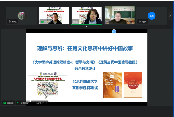 12月20日,大学思辨英语课程虚拟教研室以“理解与思辨:在跨文化思辨中讲好中国故事—《大学思辨英语精读4:哲学与文明》《理解当代中国读写教程》融合教学设计”为主题举办了本学期第三次活动,来自全国高校1200余位老师线上参加本次活动。yl23411永利陈崛斌副教授进行了主题分享。他分享了自己在英语教学中探索理解当代中国系列教材与大学思辨英语系列教材融合的创新教学模式经验,并深入浅出地讲解了如何在专业英语教学中融入中国元素、中国故事,帮助员工更好地理解和传播中国文化。最后,陈崛斌副教授还与参会教师进行了互动讨论,分享了自己的教学经验和心得。他的演讲内容丰富、生动有趣,引起了广大教师的共鸣和思考。