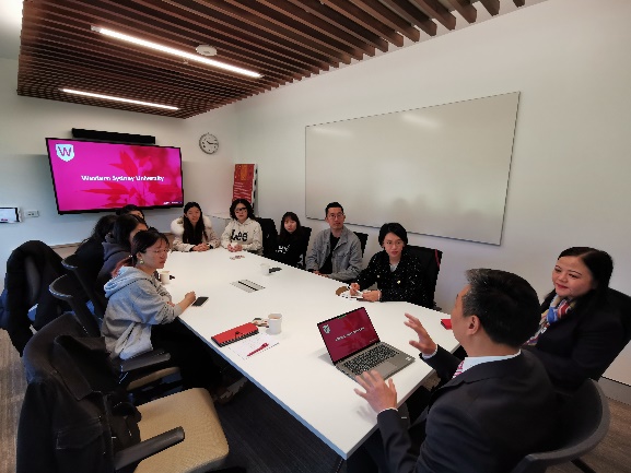 实践团受到了西悉尼大学副董事长Yichen Lan教授和澳华文化研究院经理Jing Han教授的热情接待。副董事长Yichen Lan教授代表西悉尼大学向实践团成员的到来表示欢迎,并为大家介绍了西悉尼大学的发展情况。作为澳大利亚最具文化多样性和包容性的大学之一,西悉尼大学自建校以来在学术活动、社会服务、校际交流等方面成果颇丰,与yl23411永利官网也在诸多领域开展了不同形式的交流与合,包括学者互访、联合研究项目和学术研讨会等各类活动,推动了中澳两国之间的语言和文化研究的交流与发展。实践团此次到访必将会为未来两校师生深入交流提供新的可能。