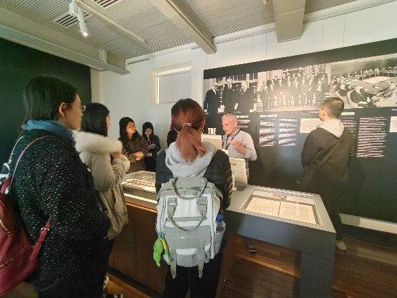 下午,实践团成员参观了位于西悉尼大公司园内的惠特拉姆研究院(Whitlam Institute)。该研究院致力于研究和传承澳大利亚前总理格夫·惠特拉姆(Gough Whitlam)的政治遗产和政策成就。惠特拉姆是澳大利亚历史上具有重要影响力的政治家之一,在任期间致力于提高澳大利亚少数族裔的社会地位,并推动中澳两国关系的发展,积极开展对华交流和合作,为中澳建交作出了重要贡献。实践团成员参观了展示惠特拉姆生平事迹和政策成就的各类展品,深入了解了惠特拉姆的政治理念和他对澳大利亚国家发展的影响。