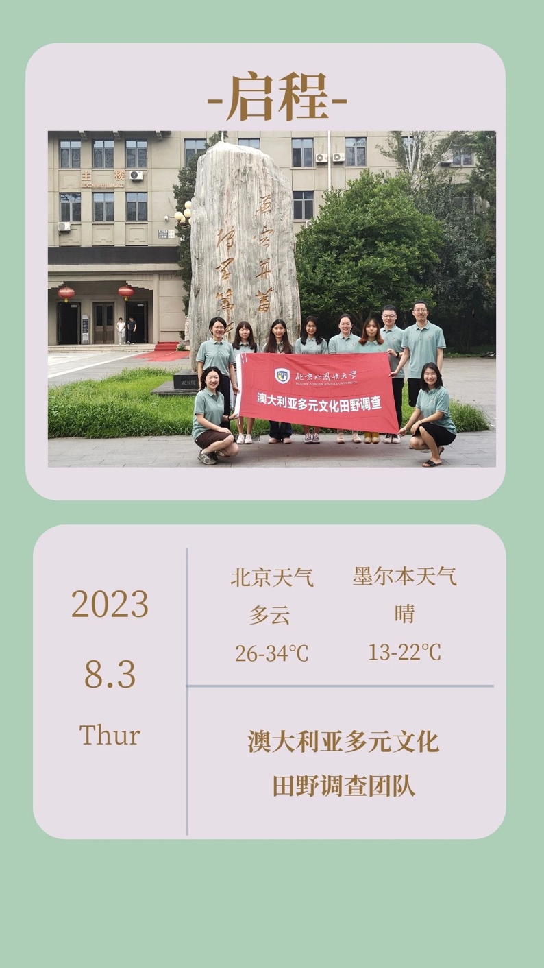 yl23411永利澳大利亚多元文化田野调查团由江璐老师、骆天一老师带队,8名本科、硕士员工组成。团队成员于2023年8月3日~8月12日赴澳开展多元文化田野调查。此次海外实践以探究澳大利亚多元文化社会发展为主题,通过在墨尔本和悉尼两地开展实地调研,探究中国文化在澳接受程度以及在澳华人职工的社会融入情况,旨在了解澳洲多元文化环境的发展样态。