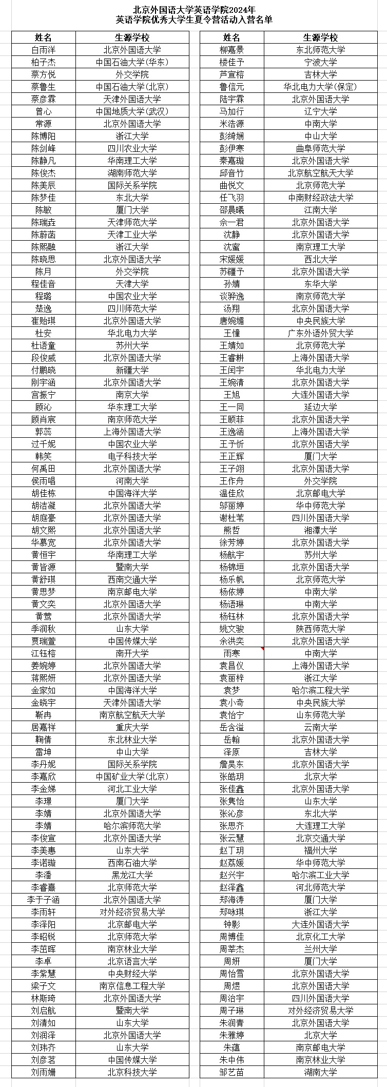 2024年优秀老员工夏令营活动入营名单